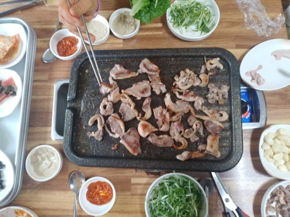 첫째는 들깨가루에 매력을 이날 알아서 며칠전에 삼겹살을 집에서 구어 먹었는데 들깨가루에 된장을 섞어서 맛있게 먹었다